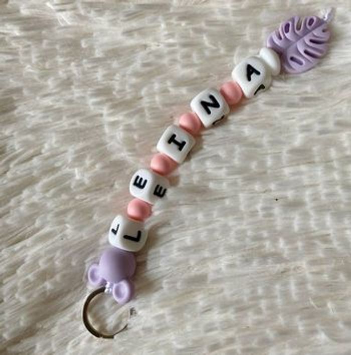 Je confectionne des attaches- tétines en silicone, mais aussi des anneaux de dentition ainsi que des porte-clés. Tout est réalisé sur commande couleur au choix avec ou sans le prénom. Envois possible partout en France. Attache tétine personnalisé 10€ Porte clé personnalisé 8€ Le lot 14€ Pour tout information n’hésitez pas à me contacter je me ferai un plaisir de vous répondre