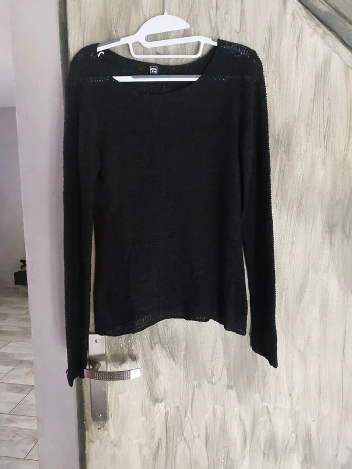 Pull ajouré porté plusieurs fois Un accro dans le bas du dos Et plusieurs sur une des manches