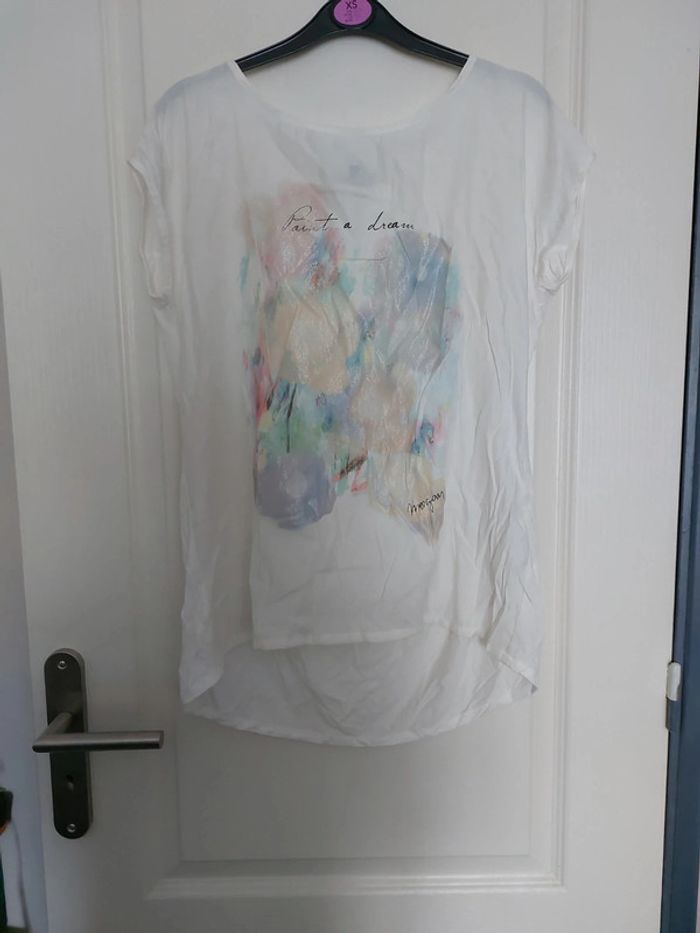 T-shirt blanc avec motif couleur pastel - photo numéro 1