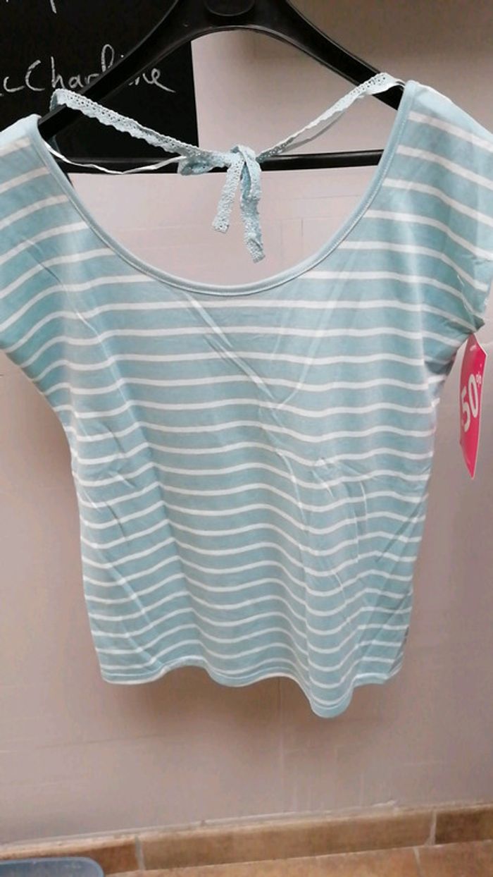 Bonjour Je vends ce t-shirt turquoise à rayures blanche de chez in extenso jamais porter de taille M