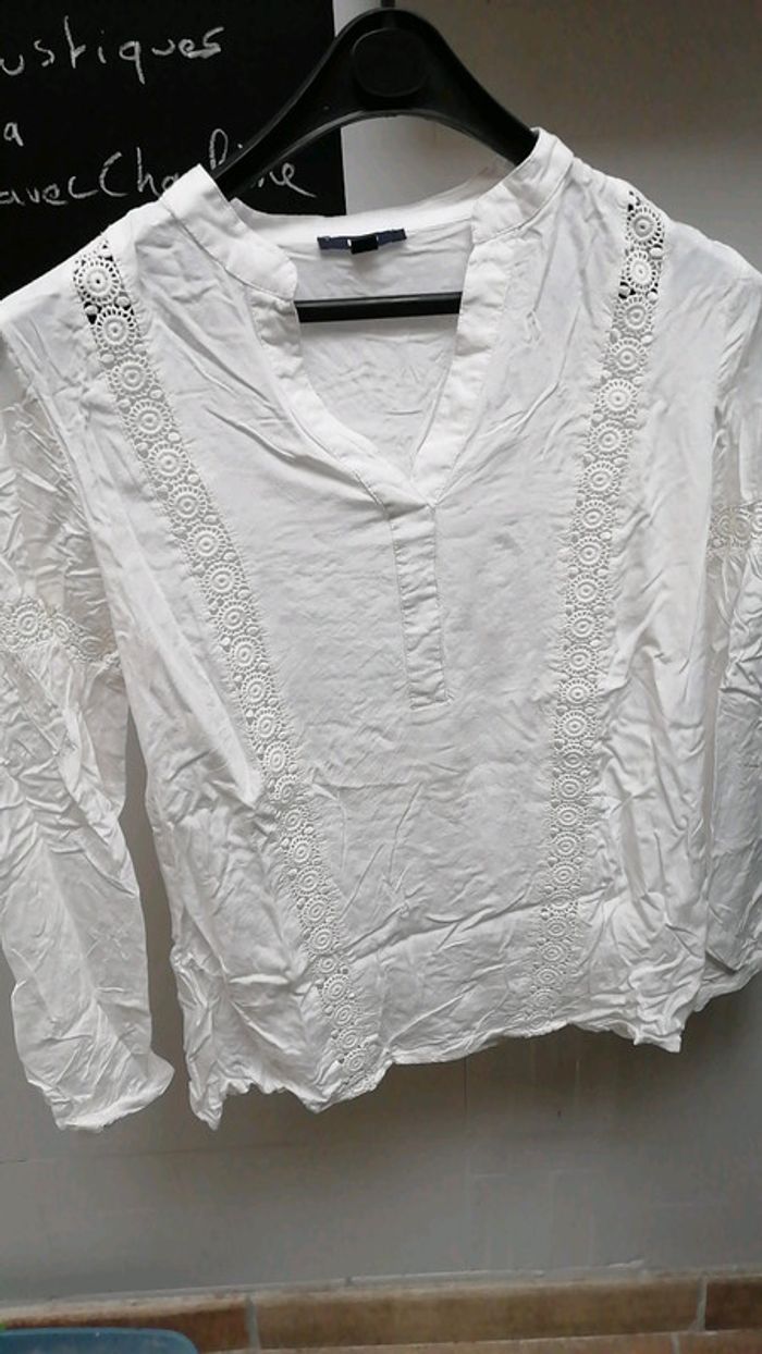 Je vends cette blouse blanche avec décoration de marque kiabi porter quelque fois de taille 38