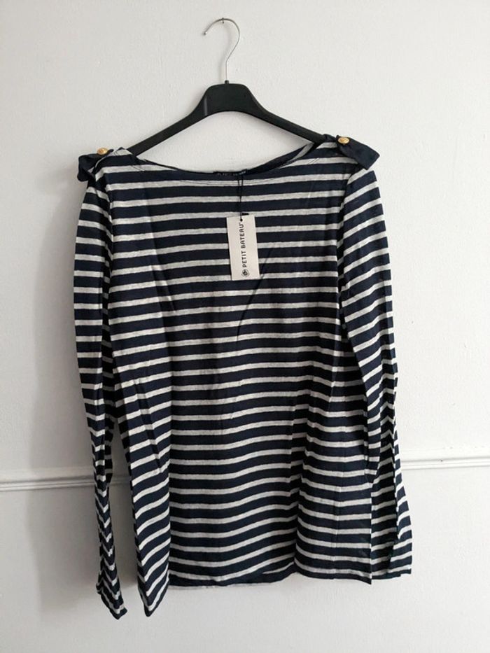 T-shirt manches longues lin M marinière - photo numéro 2