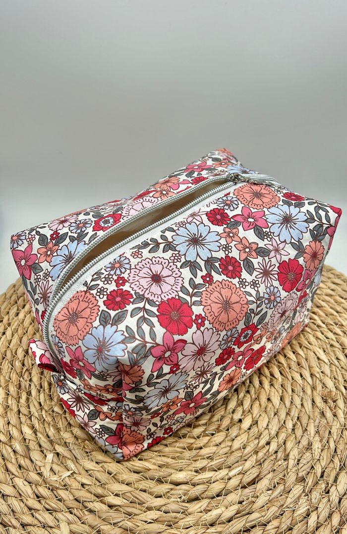Trousse de toilette liberty fleurs rouges fait main