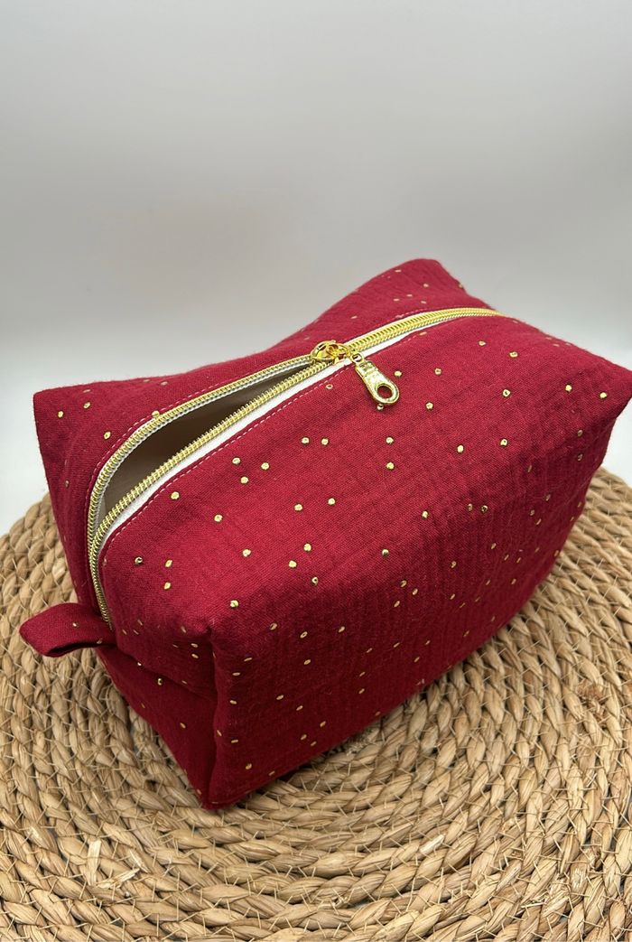 Trousse de toilette fait main par mes soins Très grande capacité Taille 22cm x 15cm x 14cm 100% coton Rembourré en ouatine.