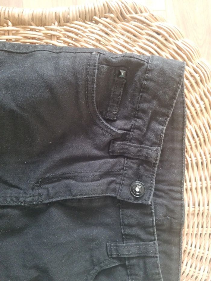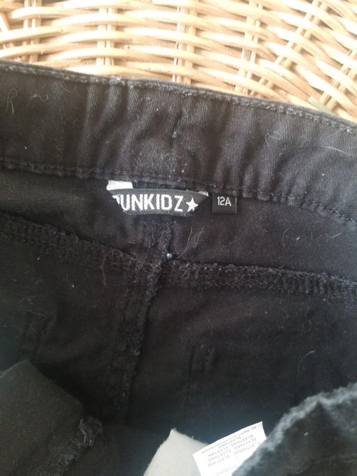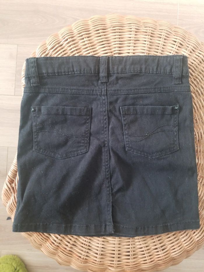 Jolie mini-jupe en jean noir avec taille réglable par élastique. #12ansmadamepirate
