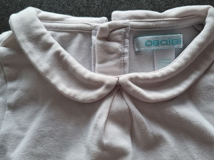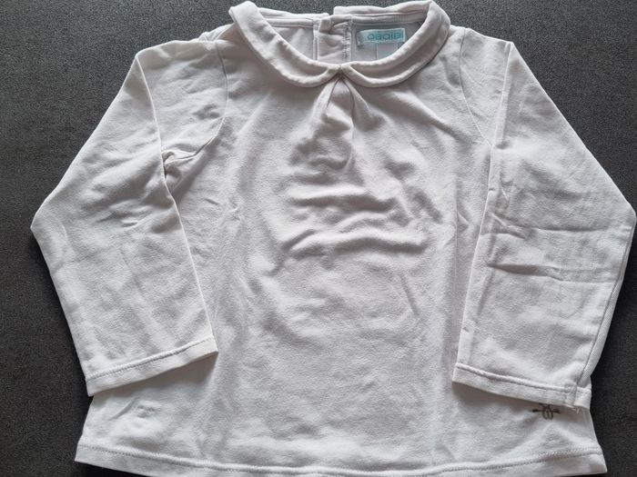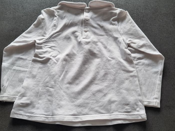 T-shirt manches longues blanc avec col, Obaïbi, 18 mois. Très bon état Possibilité de faire un lot. N'hésitez pas si questions ou besoin d'autres photos.