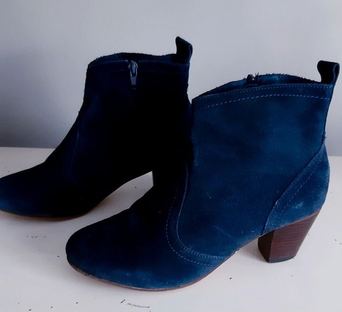 Boots en cuir nubuck, portées 2 fois, hauteur talons 6 cm