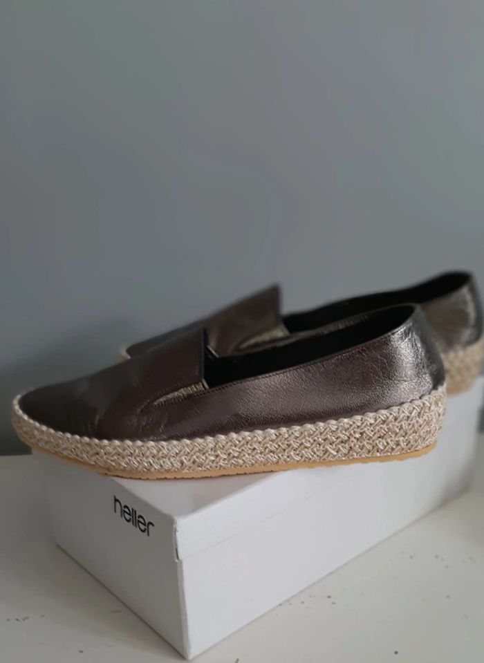 Chaussures en cuir à enfiler, jamais portées Indiqué 40 mais correspond à un 39 Couleur plomb argenté.... Modèle vintage de nouveau tendance .....