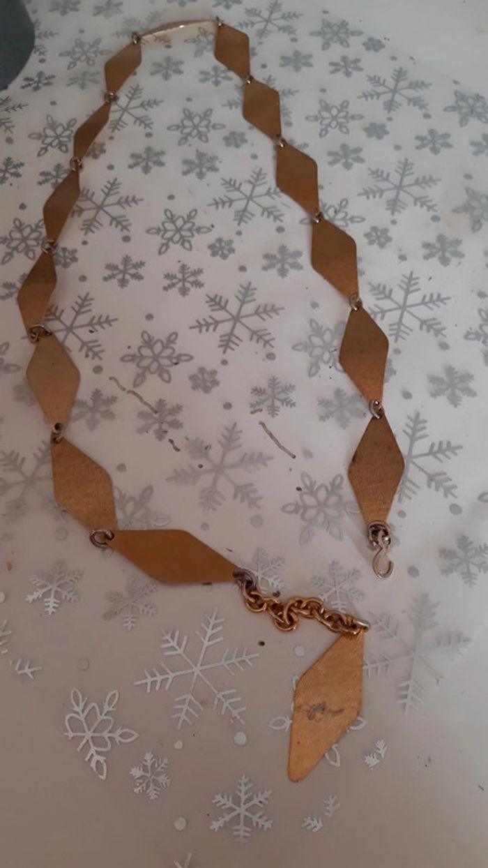 Véritable ceinture dorée vintage forme losanges, en bon état, seul le dernier losange présente une petite altération de la dorure (photo 2) Suivant fixation du crochet sur la petite chaînette : --> longueur mini 81 cm --> longueur maxi 87 cm