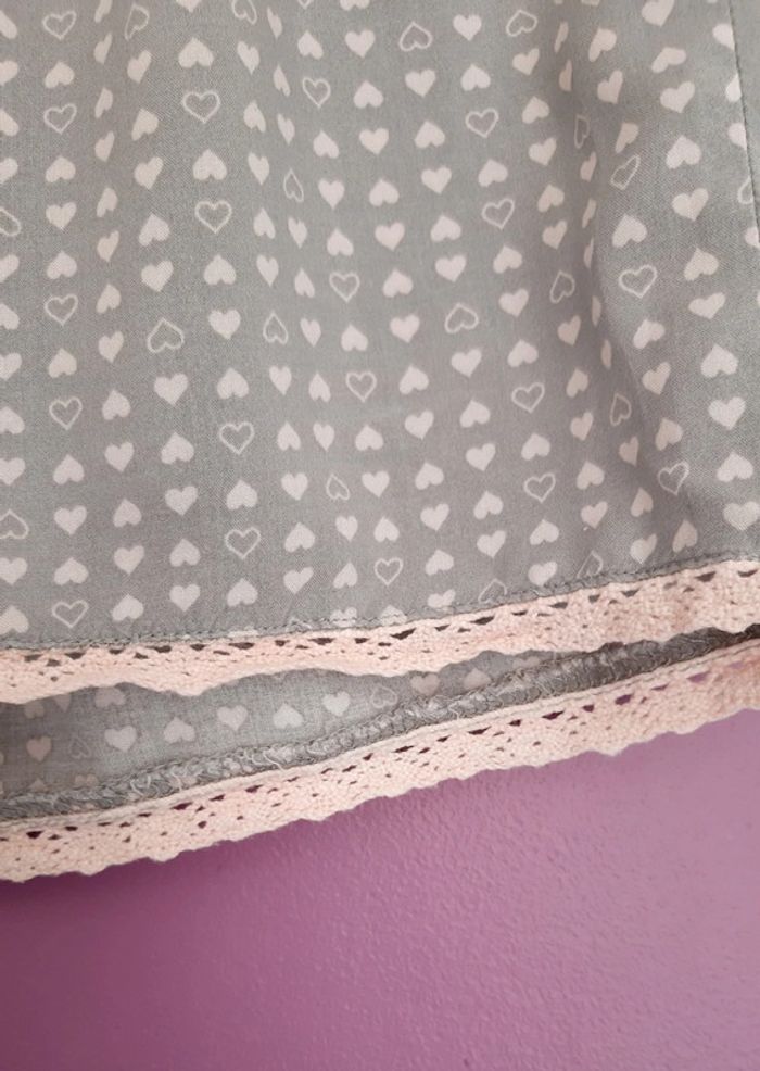 Short de nuit neuf, motifs rose poudré sur fond gris, taille élastiquée, petit noeud décoratif