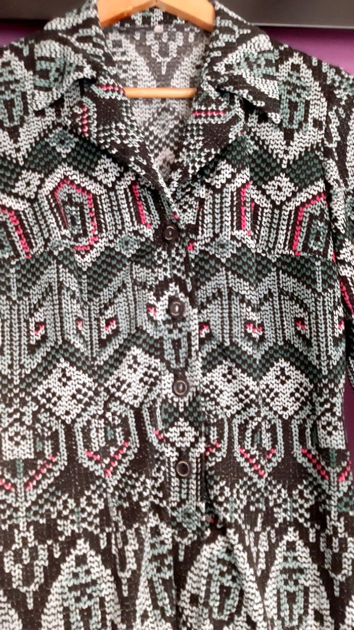 Véritable robe des années 70 en parfait état, col chemise, longueur sous genou A ceinturer éventuellement