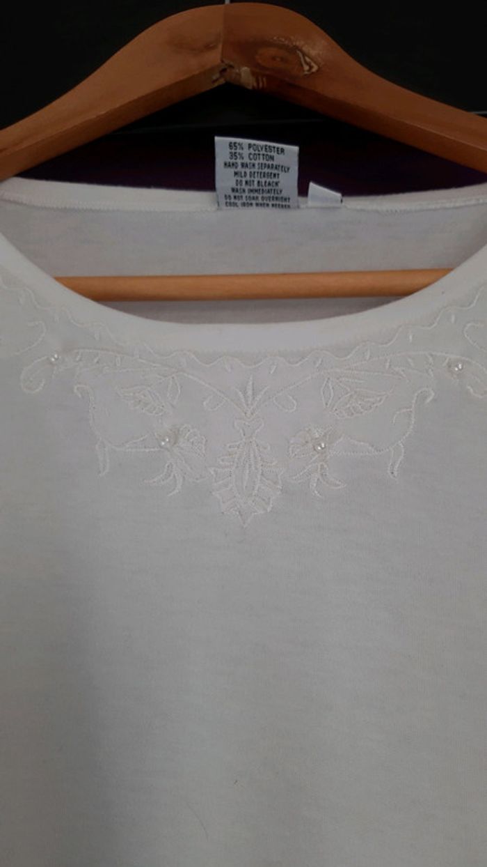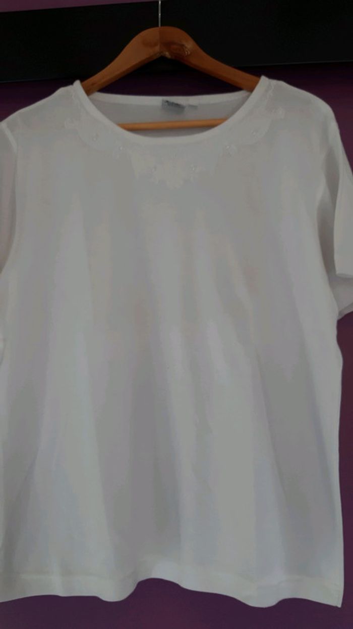 Tee-shirt manches courtes, jamais porté, broderie ton sur ton, orné de quelques perles