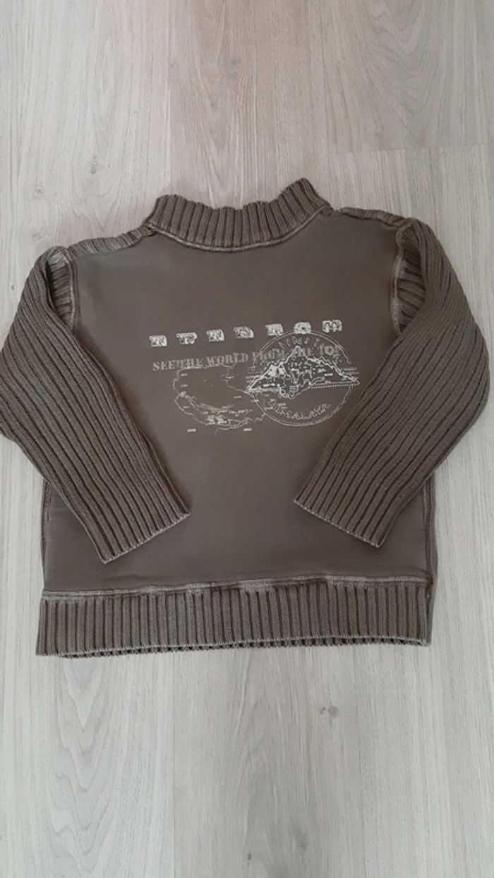 Pull col montant bi matières (manches et dos maille côtelée), effet légèrement usé d'origine, dos uni
