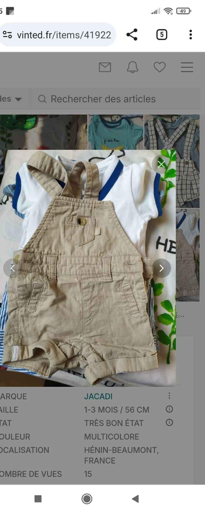Lot 4 tenues d'été 3 mois Lot 4 vêtements été 3 mois Combipilote fruit très bon état Combipilote jacadi mise 1 fois Salopette jacadi neuve Salopette Kiabi très bon état