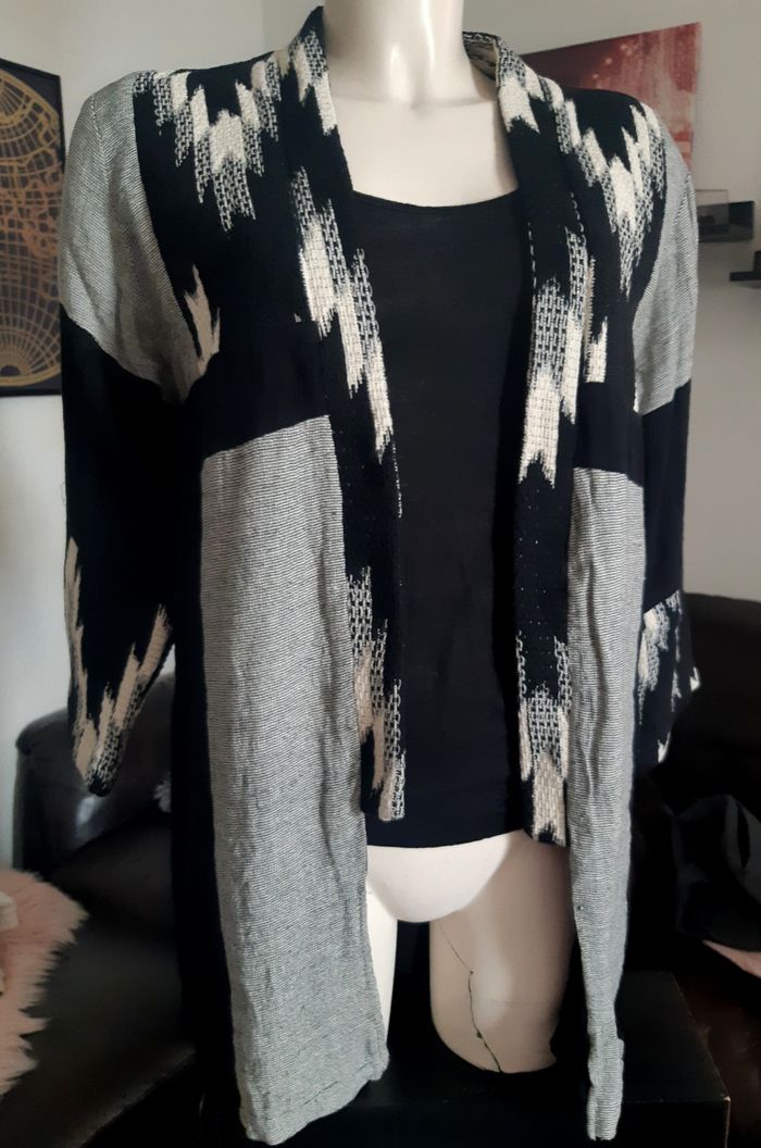 Gilet mi-long patchworks noir/blanc coton 100% taille M/L marque Ema blue's - photo numéro 1