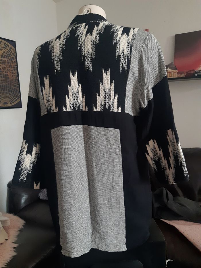 Gilet mi-long patchworks noir/blanc coton 100% taille M/L marque Ema blue's - photo numéro 3