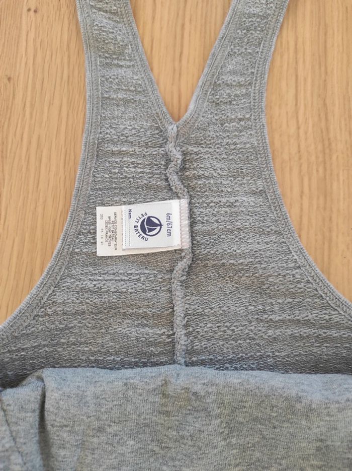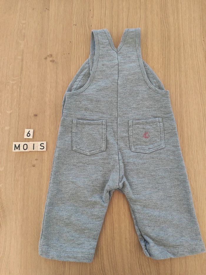 Salopette en coton gris, Petit Bateau, en parfait état, taille 6 mois. Super confortable pour bébé !
