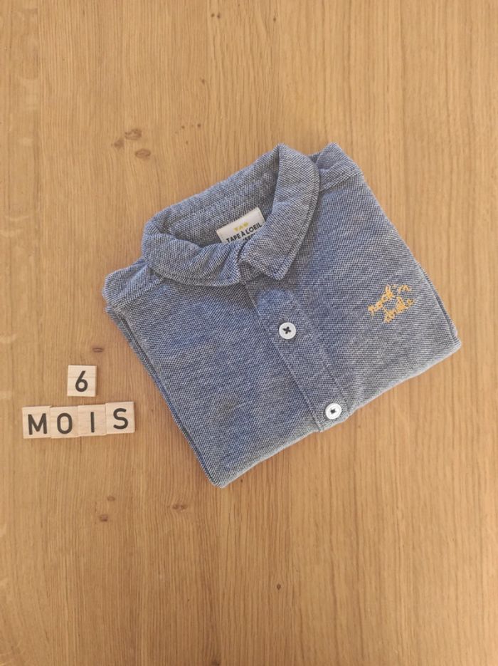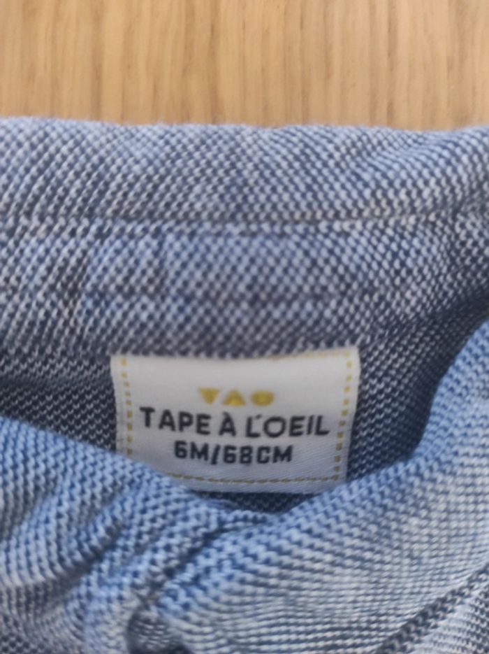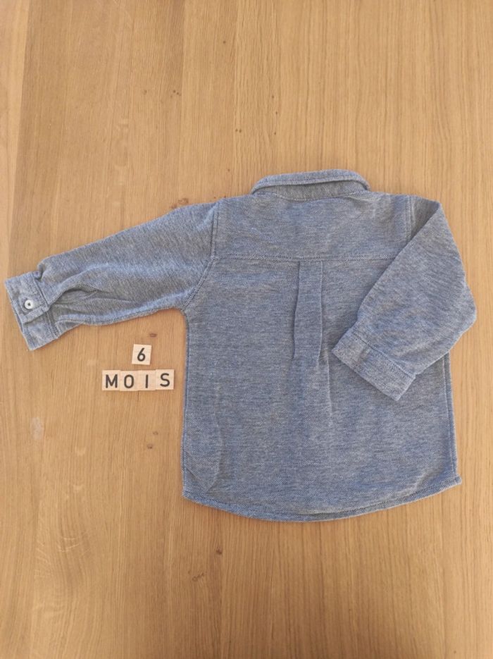 Chemise Tape à l'oeil, très souple et confortable, en parfait état, taille 6 mois. Coloris bleu chiné.