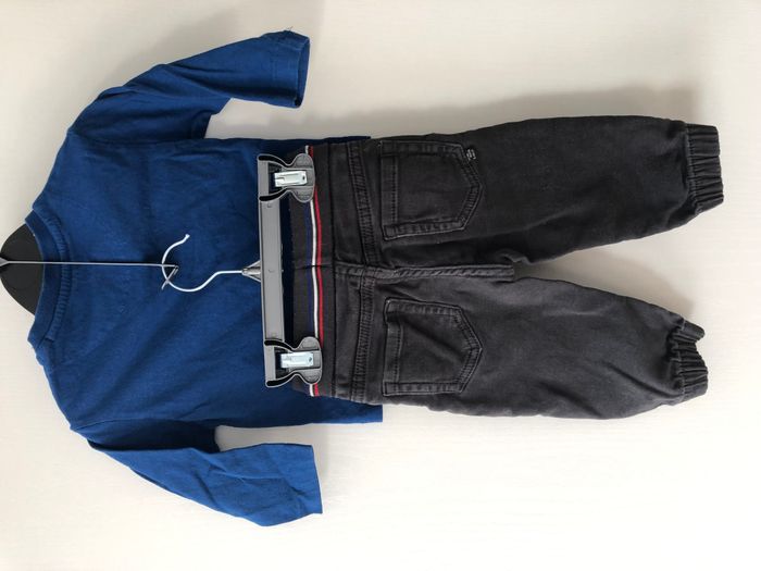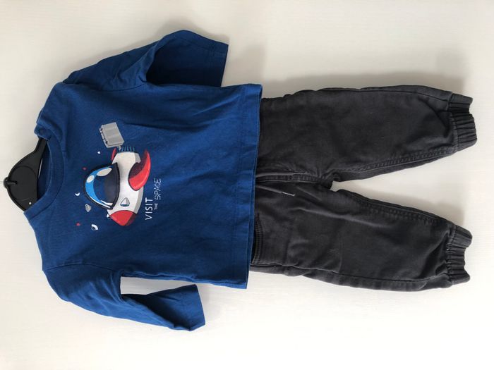Très bel ensemble garçon composé d'un haut manches longues et d'un pantalon elastiqué à la taille Motif d'une fusée dans l'espace Marque Mayoral Taille 9 mois, 74cm