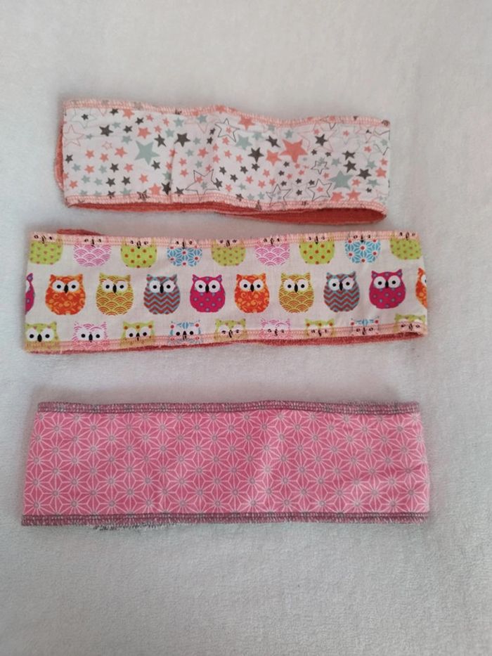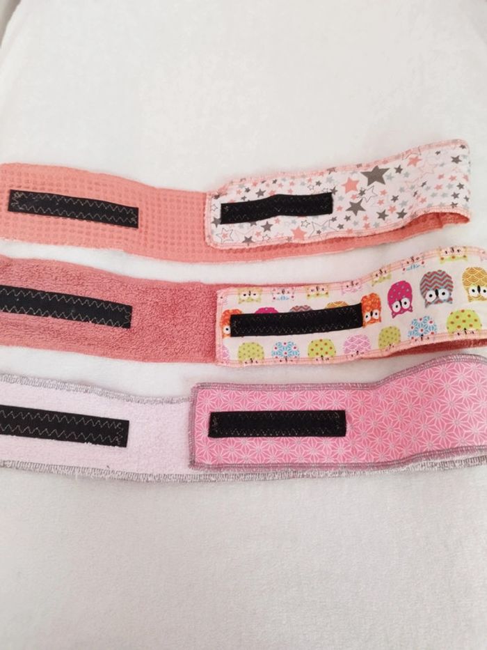 Lot de 3 bandeaux de soins Fait main en éponge. Taille réglable grâce au scratch