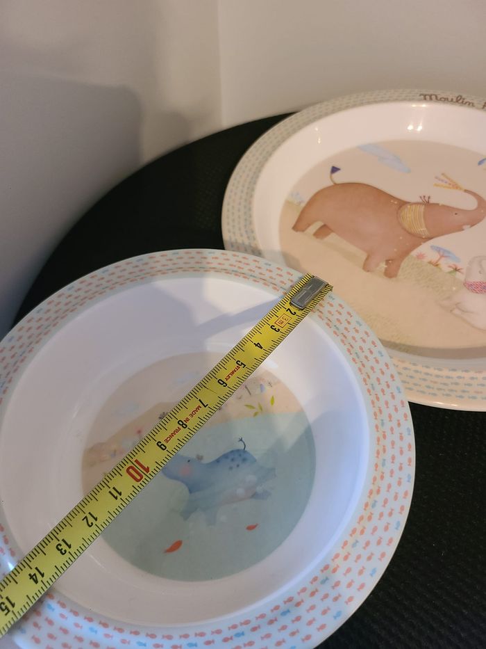 Assiette éléphant & bol hippopotame pour bébé ou enfant, Moulin Roty
