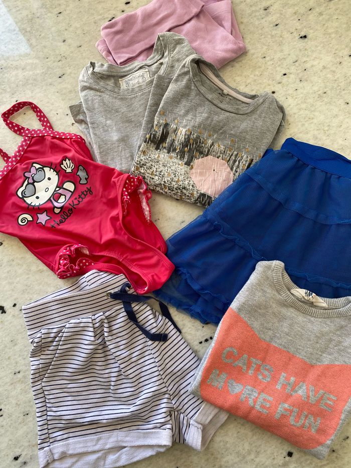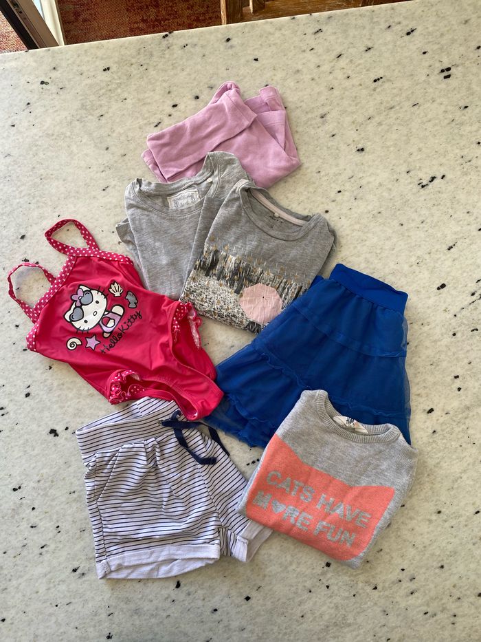 Lot fille 2ans 7 pièces Maillot de bain, jupe, short, tops…
