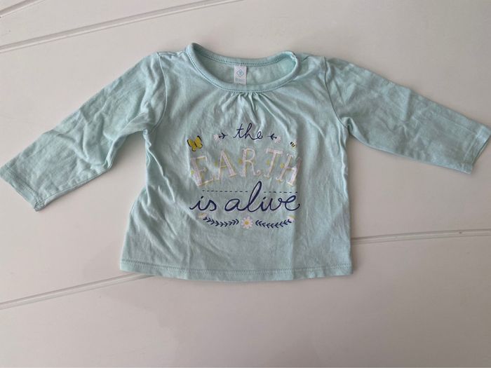 tee shirt manches longues taille 12 mois couleur vert d’eau