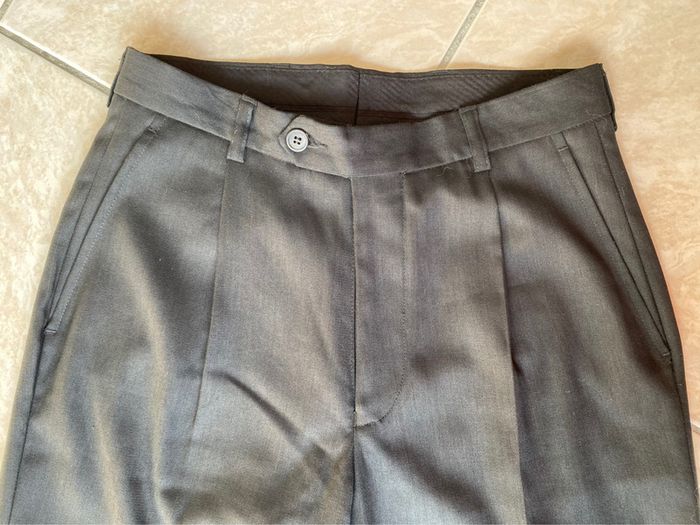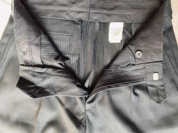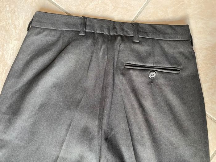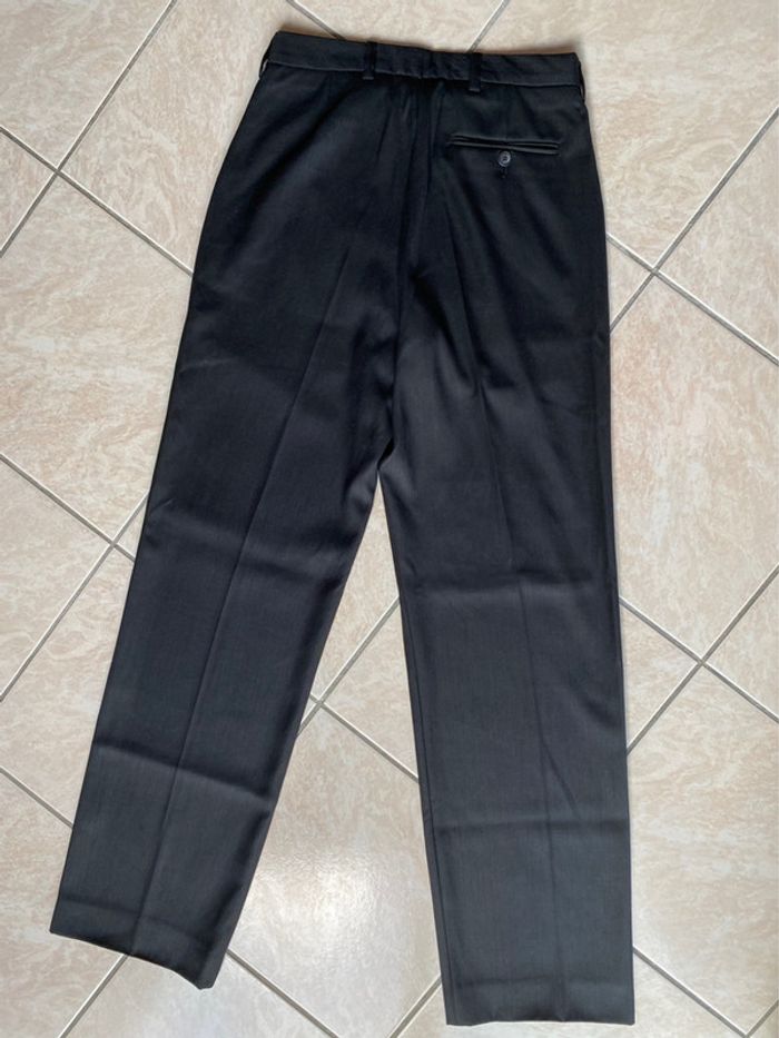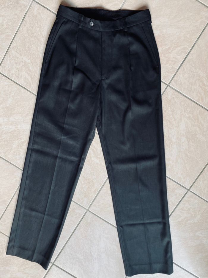 Pantalon de costume noir en très bon état, taille 36. 2 poches à l’avant et une à l’arrière. Longueur entrejambes 78,5cm