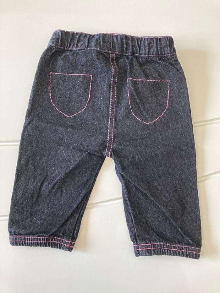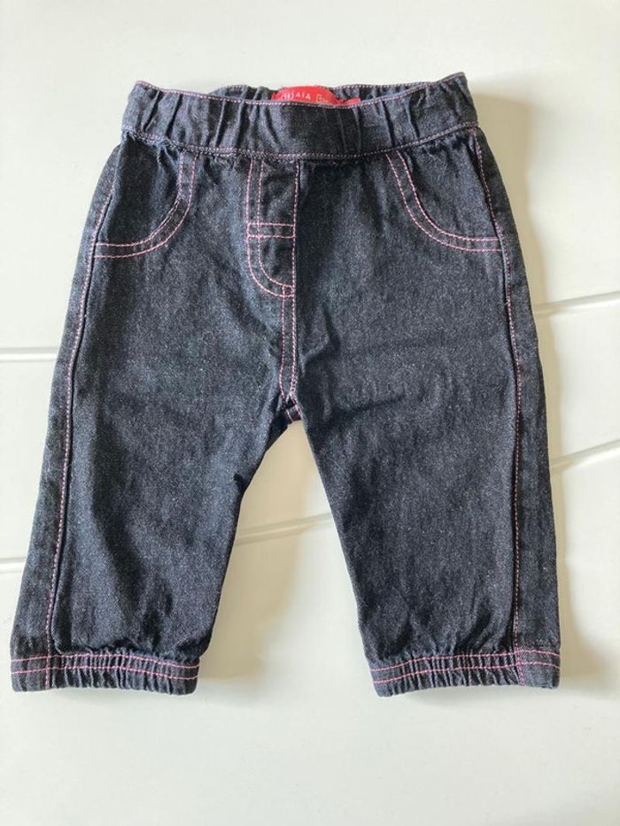 jean noir/gris et coutures rose, taille 6 mois. Neuf jamais porté