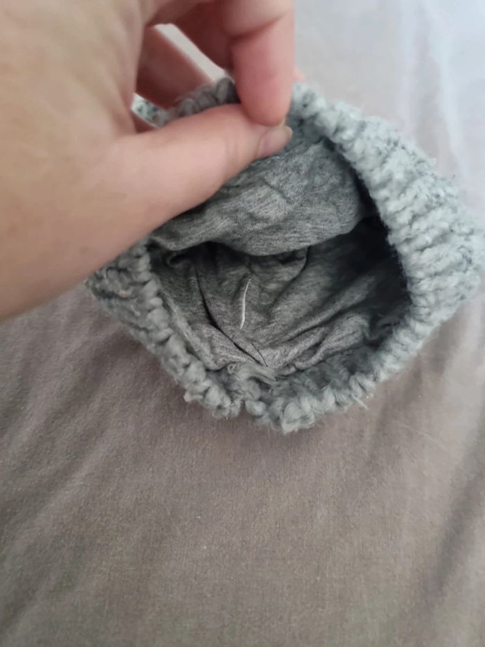 Bonnet gris avec oreille de chat doublé coton en 12 mois