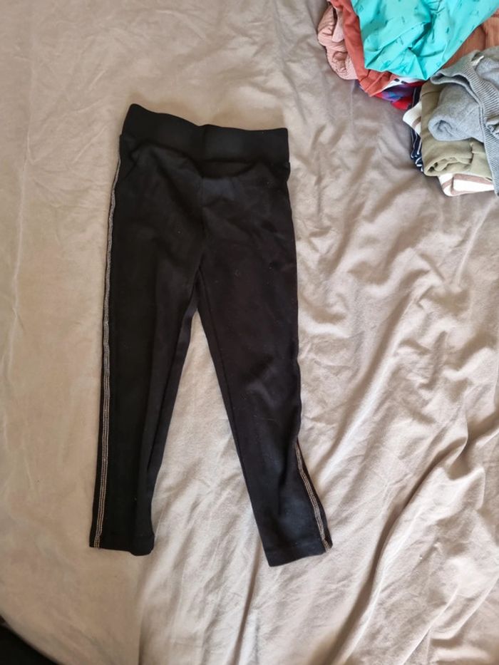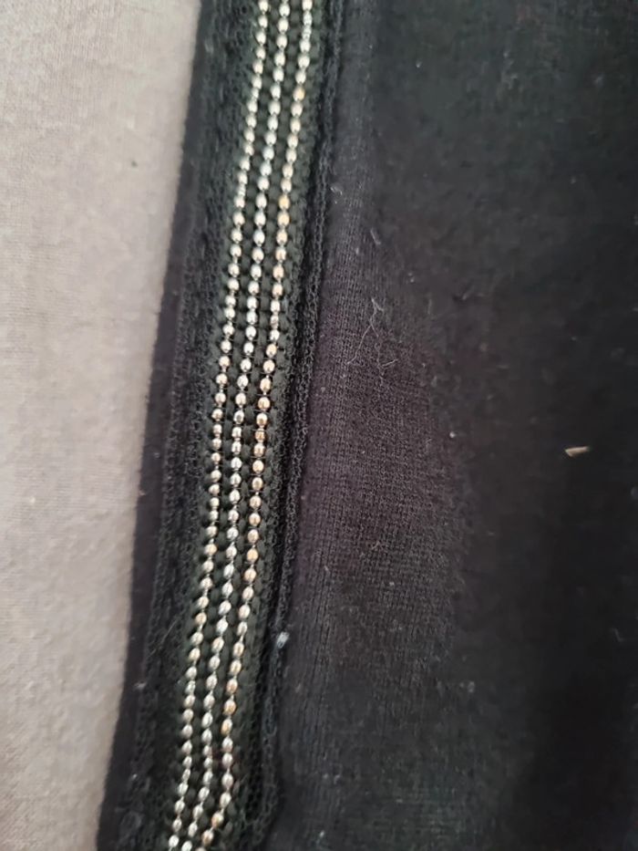 Legging noir assez epais sans être doublé non plus Bande avec sorte de strass de chaque côté Jolie et s'accorde avec tout