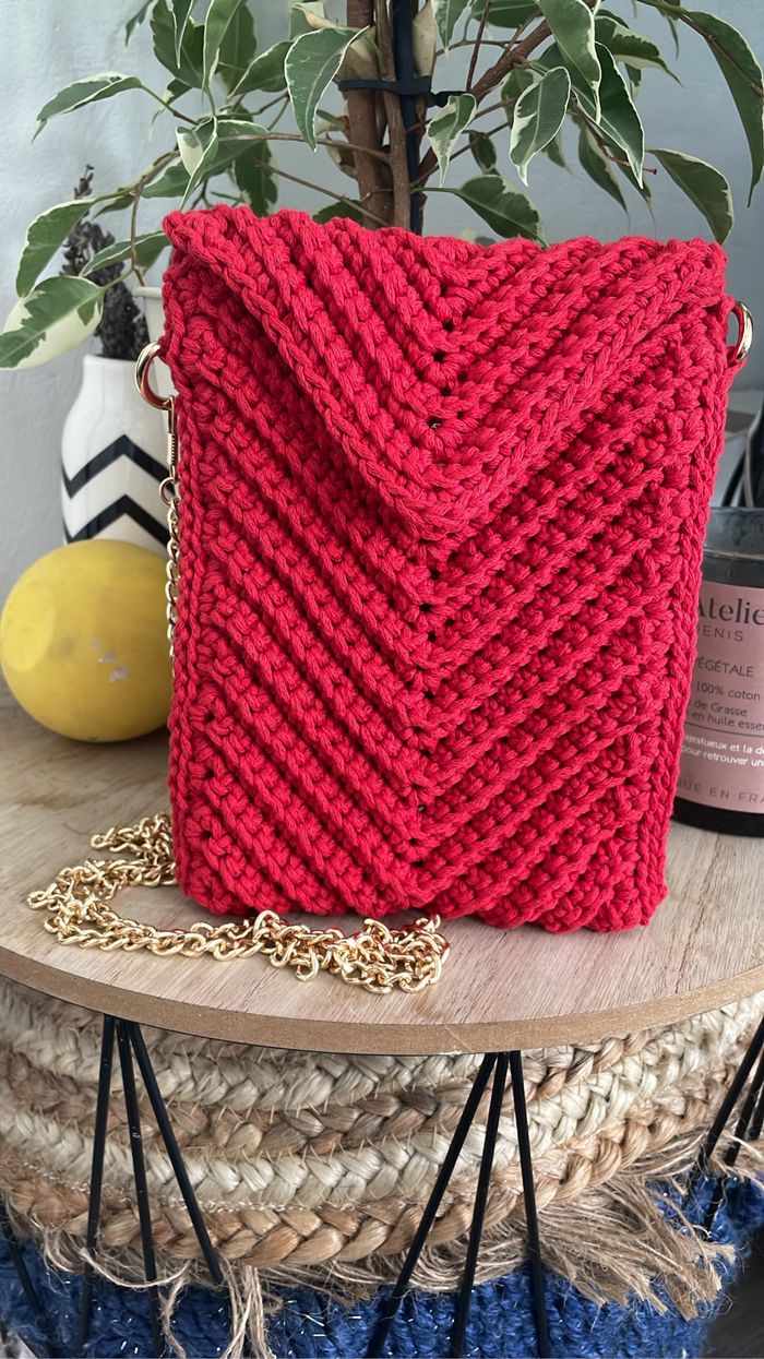 Petit sac réalisé à la main au crochet 🌸 elle dispose d’une chaînette de 1,10 mètre de couleur doré. Parfaite pour mettre sont téléphone , c’est clés et sont porte-monnaie . Dimension pochette : 20cm de haut sur 15 cm de large