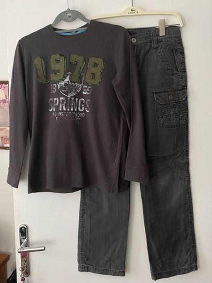 ZARA 11/12 ans pantalon cargo  en velours côtelé  + t-shirt manches longues - photo numéro 1