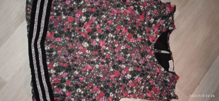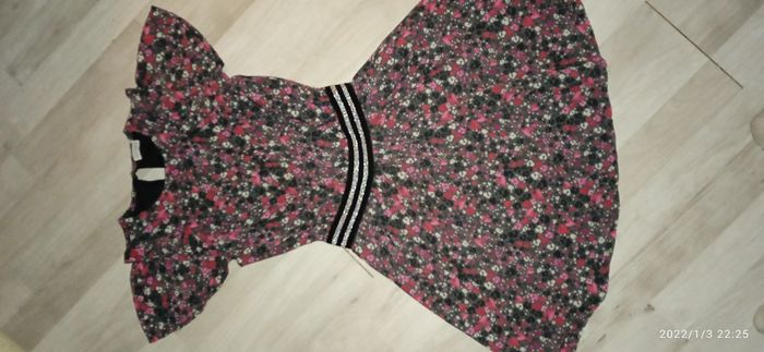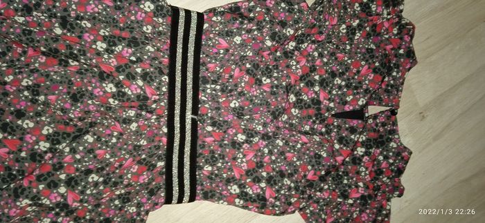Robe très agréable en tres bon état Dernière collection Modèle noir Fleury rouge / rose / blanc Ceinture argenté élastique Très belle matière