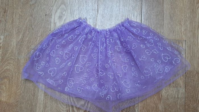 En matière tulle. Pas de taille indiquée et très élastique donc peu convenir facilement aux fillettes de 2 à 5ans je dirai 😉 #chlodanseclassique