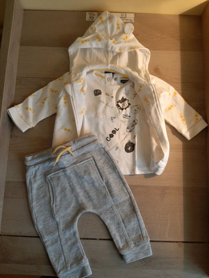 Taille 6mois. Peu portés. Tshirt +pantalon et possibilité d'ajouter le gilet zippé assorti pour 2€ supplémentaire 😉 (photos3, 4,5)
