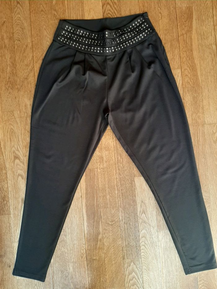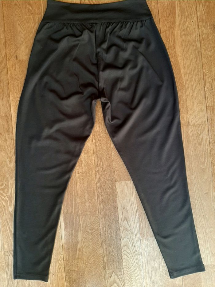 Pantalon taille marquée, large/fluide au niveau des fesses puis resserré aux jambes. Pas d'étiquette