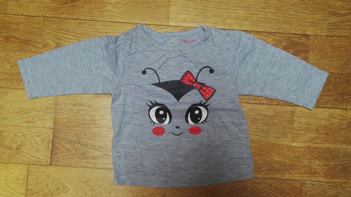Lot composé d'un t-shirt gris manches longues motif coccinelle et d'un pantalon rose et sa ceinture assortie. 6 mois #lot #look