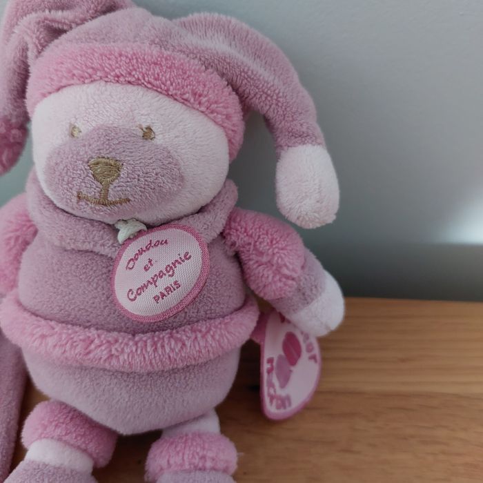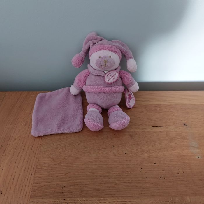 Doudou ours mouchoir rose mauve douceur macaron Doudou & compagnie 17cm Très bon état