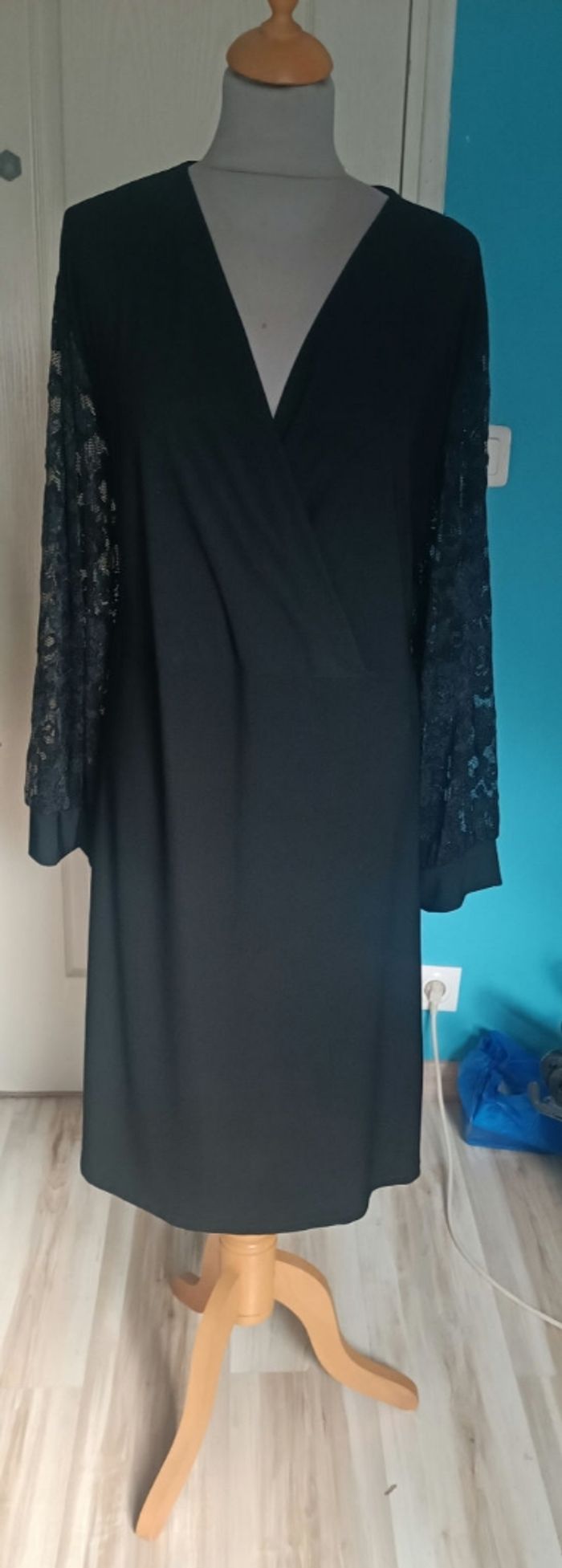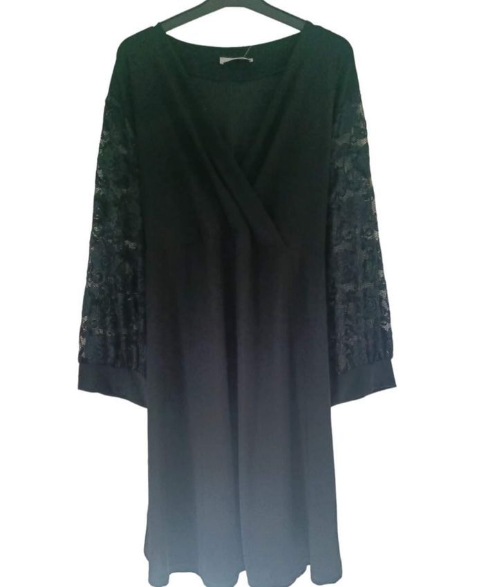Robe manche longue a dentelle Ceinture dans le dos Taille 54.56. Matière polyester et élasthane