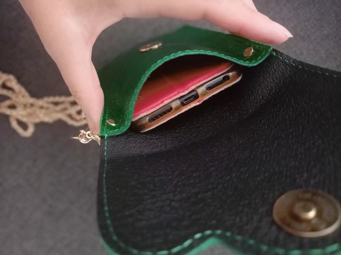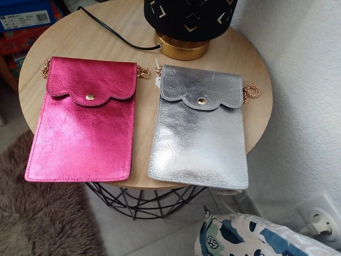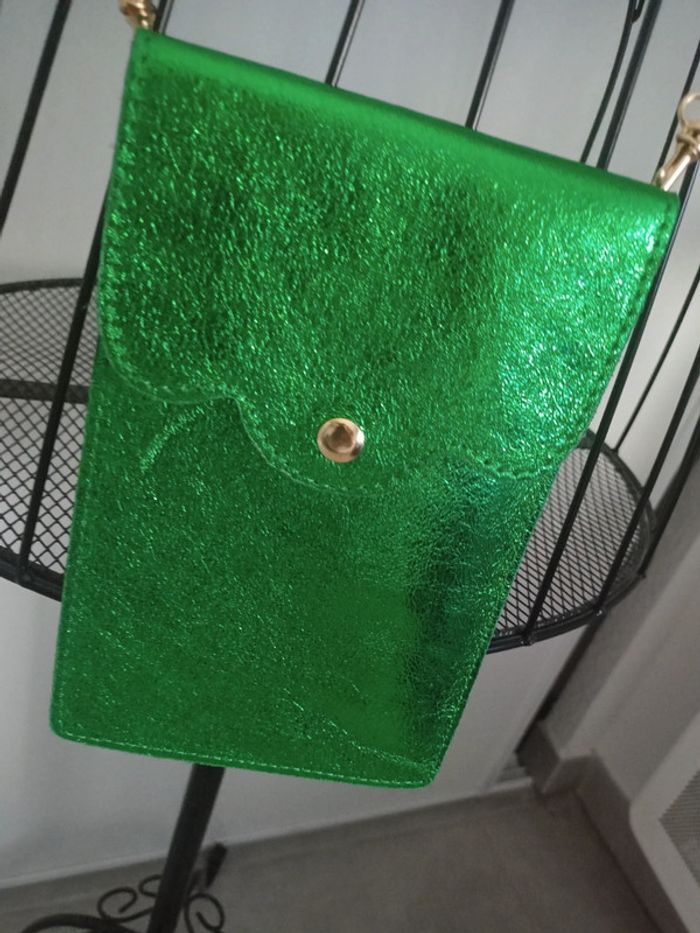 Pochette en cuir brillant Pour mettre le téléphone Fermé par pression Chaînette doré fourni 20&12 cm Neuve Différentes couleurs Me demander merci 15e pieces
