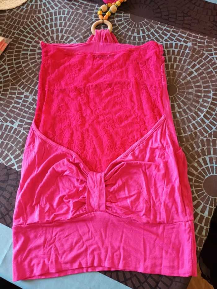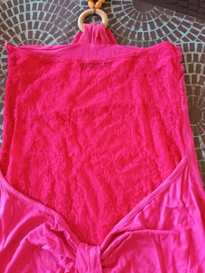 Haut dos nu Femme Taille unique Couleur rose Collier en bois au niveau du cou (40-42) Dentelle dans le dos Sans marque Très bon etat