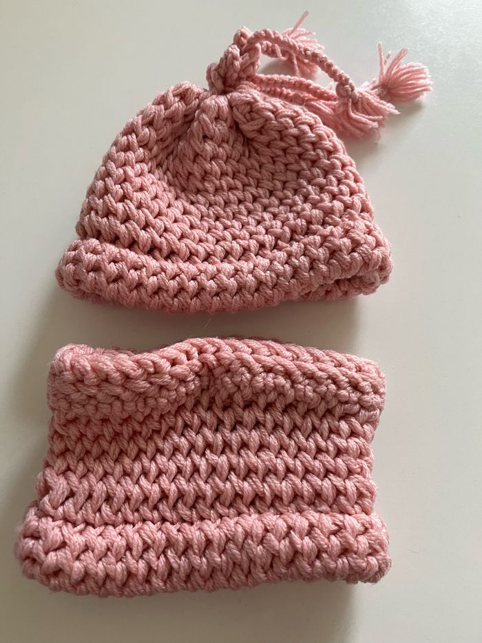 Vend ensemble en laine tour de cou et bonnet Taille environ 2 ans