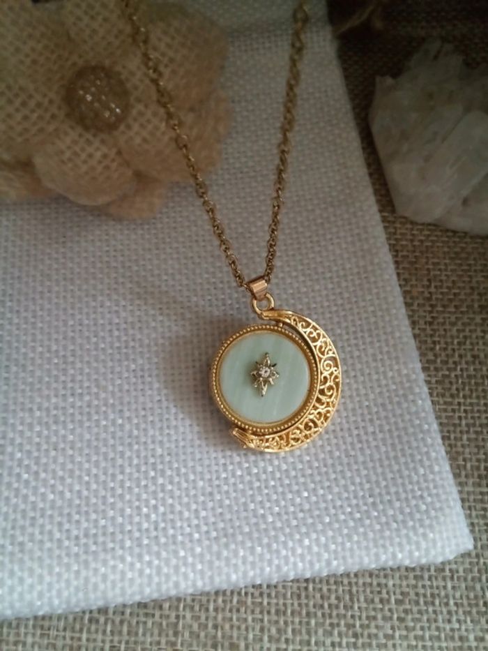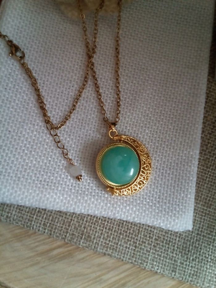 Collier lune filigranée, réversible amazonite et quartz - photo numéro 4