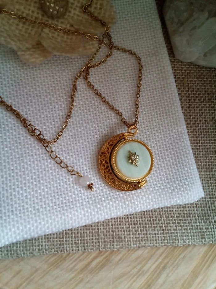 Collier lune filigranée, réversible amazonite et quartz - photo numéro 3