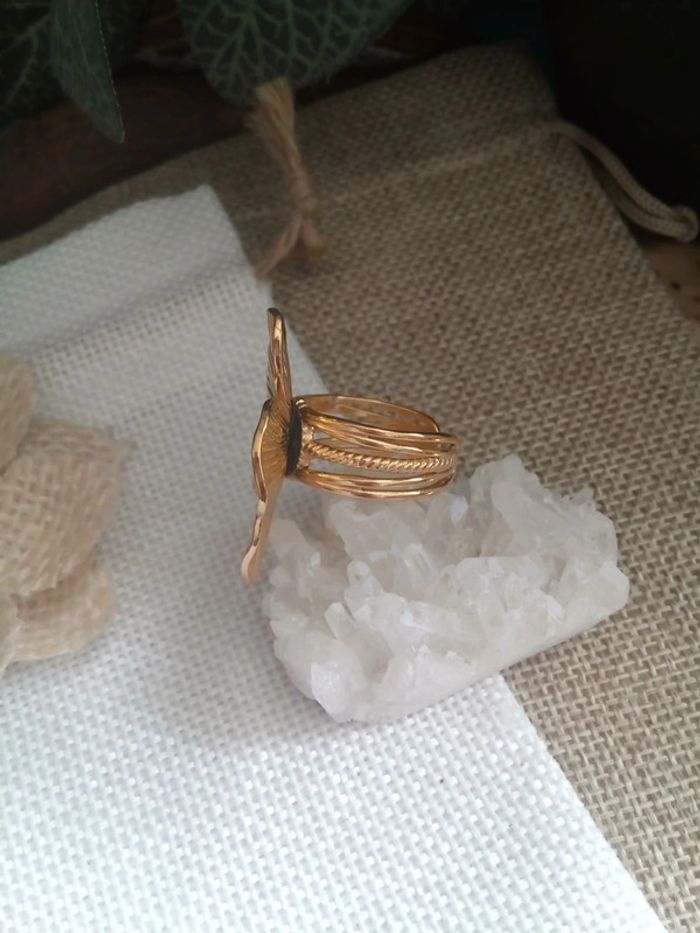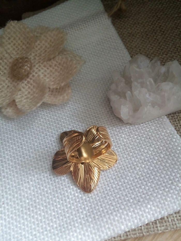 Bague bohème fleur en acier inoxydable plaqué doré - photo numéro 1