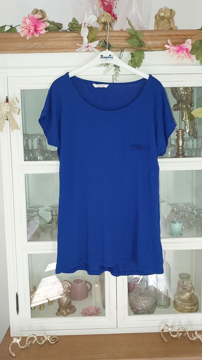 Tshirt long Camaïeu bleu électrique très bon état 36/38 - photo numéro 1