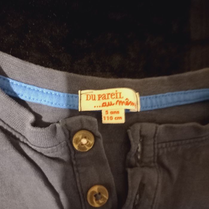 Polo enfant 5 ans, en bon état couleur bleu marine, manches longues, marque : du parail au même.
