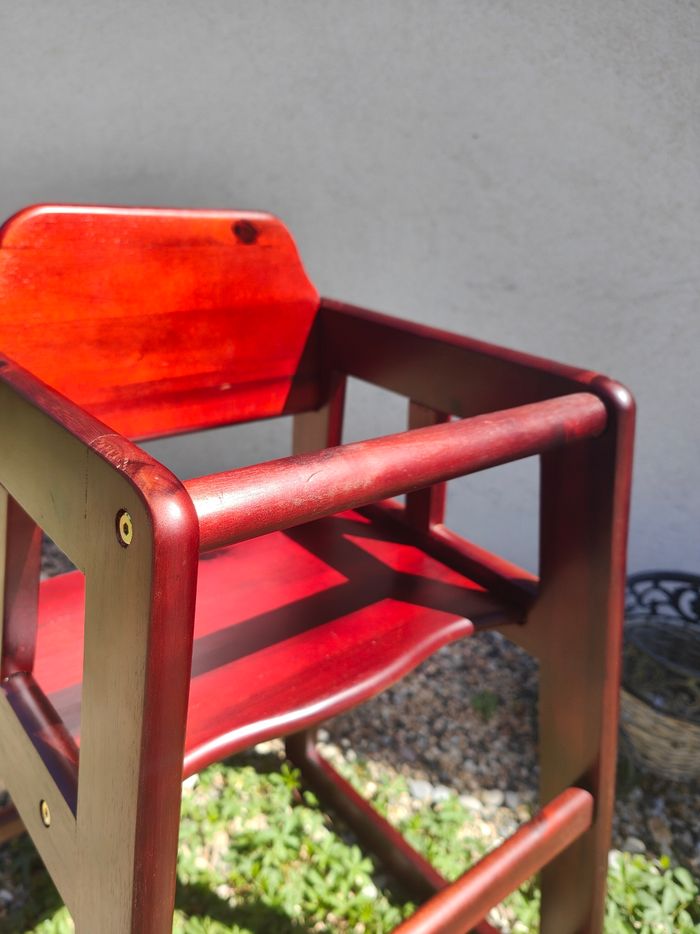 • Chaise haute en bois D'acajou NEUVE • S'adapte sur la table pour bébé • Empilable, facile à bouger • Prend peu de place • Très solide et légère permet à ce dernier de manger près de ses parents, en toute sécurité. La chaise haute sera démonter pour l'envoi. Possible de changer le mode de livraison pour payer moins cher