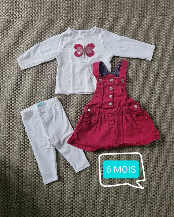 Ensemble robe jean rose + t-shirt + legging fille - 6 mois - photo numéro 1
